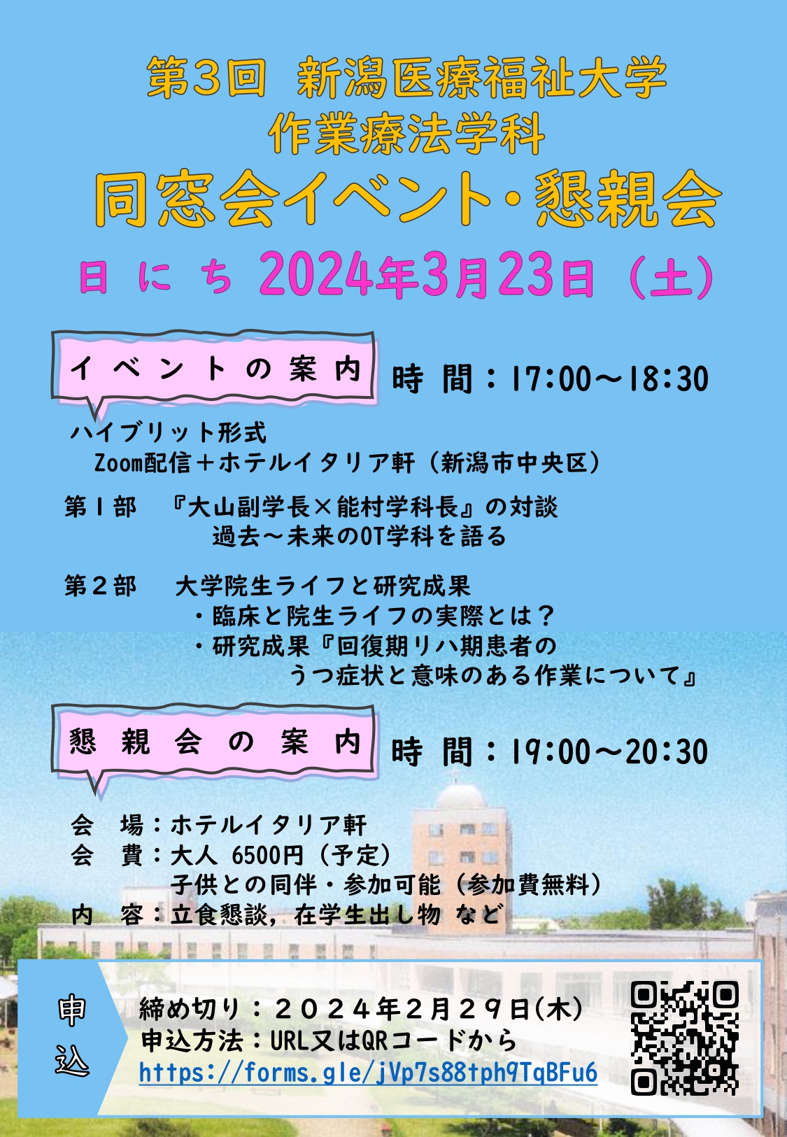 10月19日(日)に新潟医療福祉大学で行われる大学祭〈伍桃祭〉にて、同窓会イベントを開催いたします!