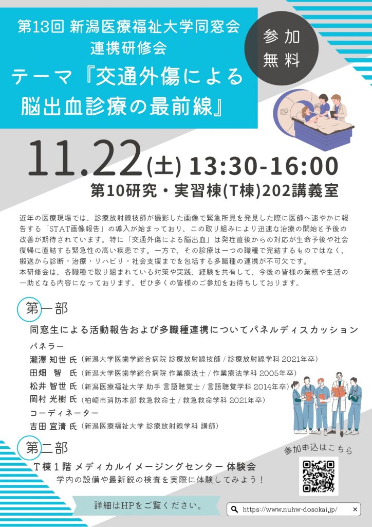 新潟医療福祉大学学祭〈伍桃祭〉2日目である、10月19日(日)に同窓会イベントを開催いたしました。